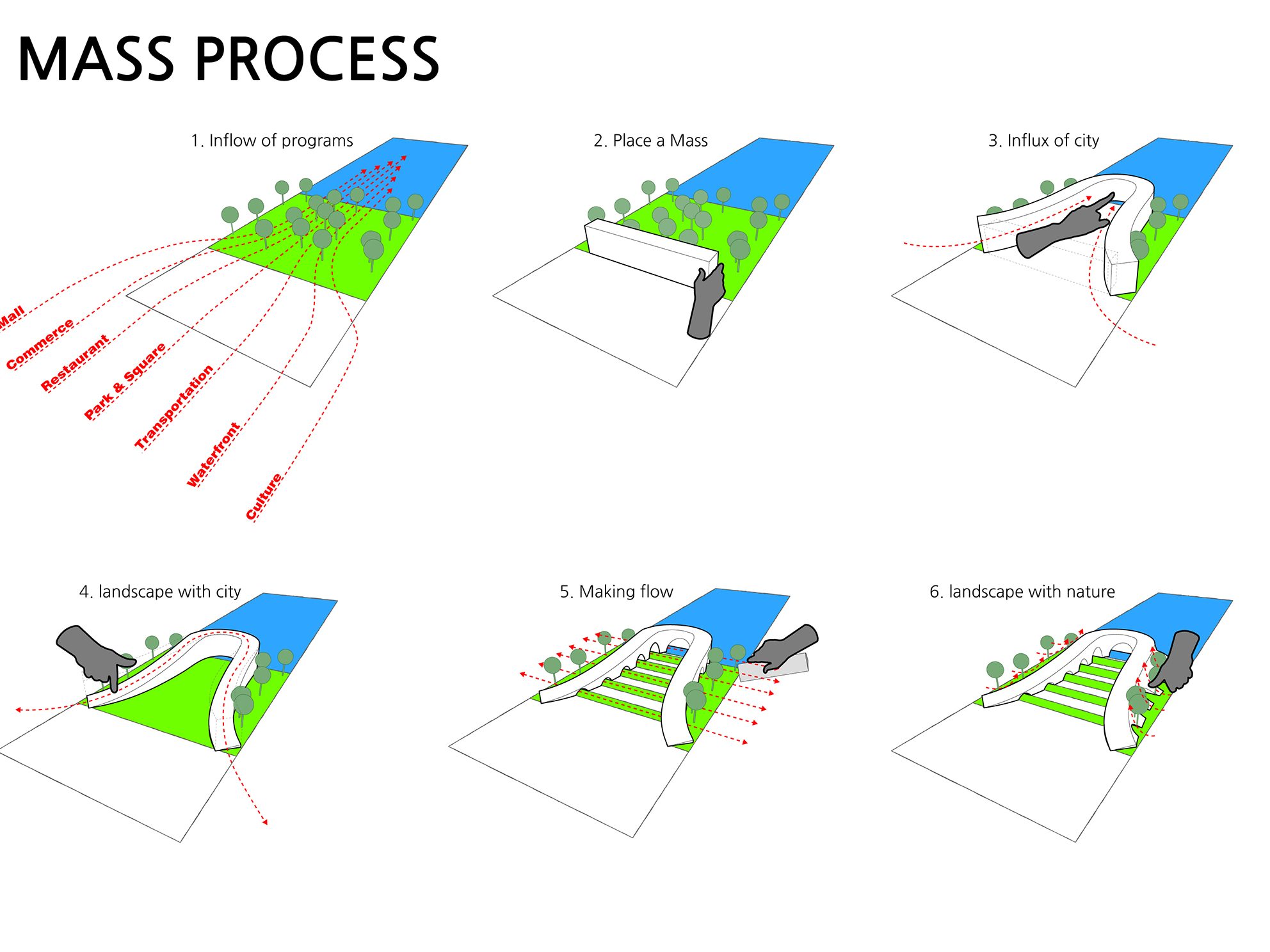 지금까지 대한민국에 없었던 새로운 타입의 워터프론트 건축계획이다. 수변 공간의 건축물은 자연의 변화와 다양한 요구를 수용하며 유연한 대처를 할 수 있어야 하며 차별없이 직,간접적 이용을 하는 시민들에게 건강한 공간이 되어 주어야 한다.