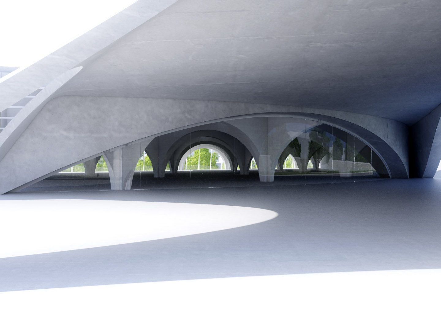 도심 속 수변공원이 가지는 장소성과 한강과 호흡하며 랜드마크를 넘어서길 바란다. 그럴려면 자연의 변화와 시대적 요구를 모두 수용 할 수 있으며 강력한 경관과 풍경으로써의 역활을 모두 수행 할 수 있도록 아치와 인공 폭포 공간을 계획했다.
