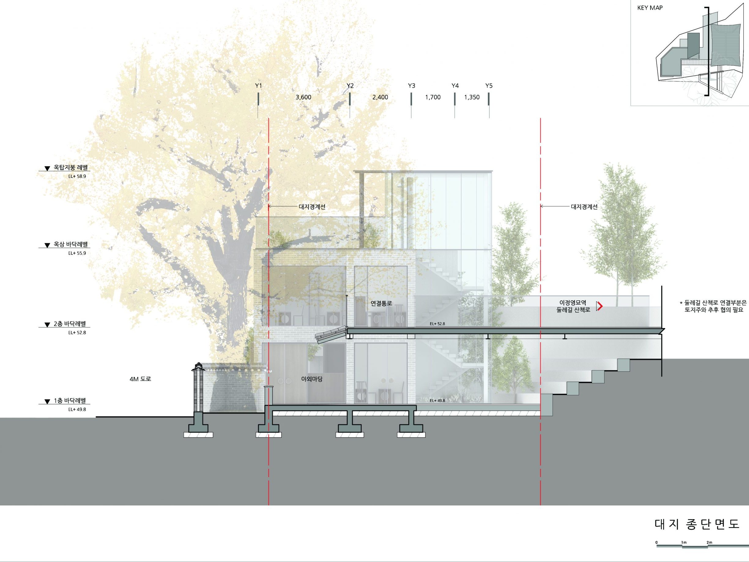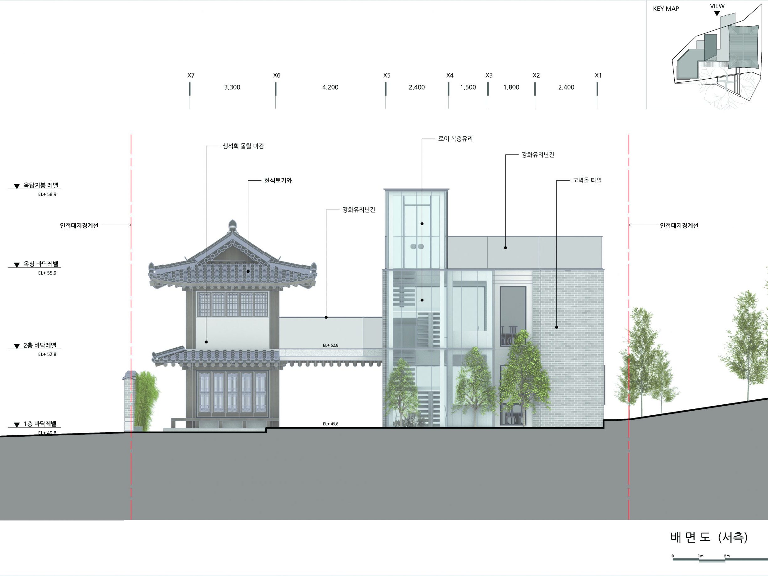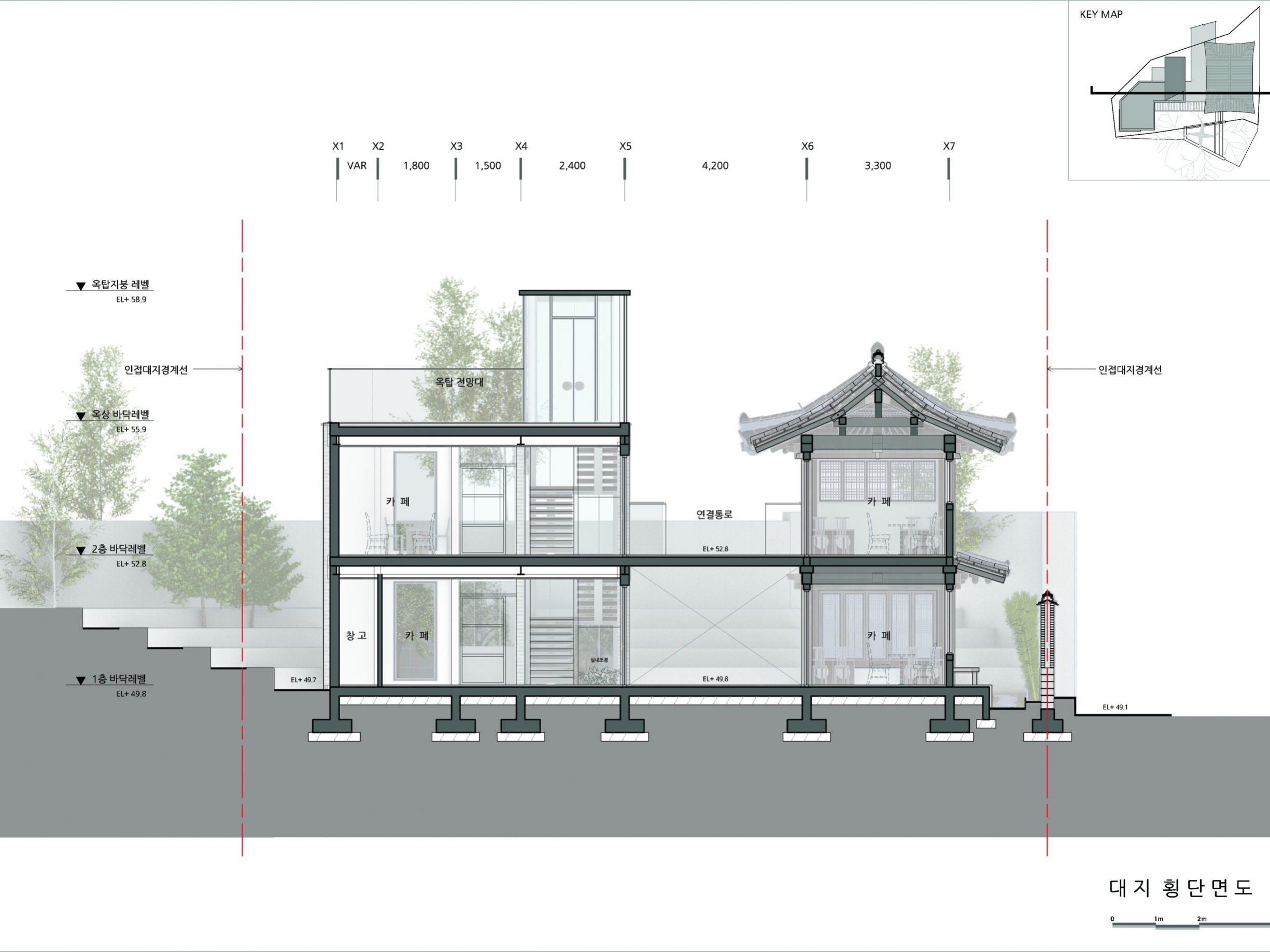 과거의 이야기와 기능에 의해 형성된 역사축을 기반으로 공간의 비워냄을 통해 과거와 현재를 연결하였다.